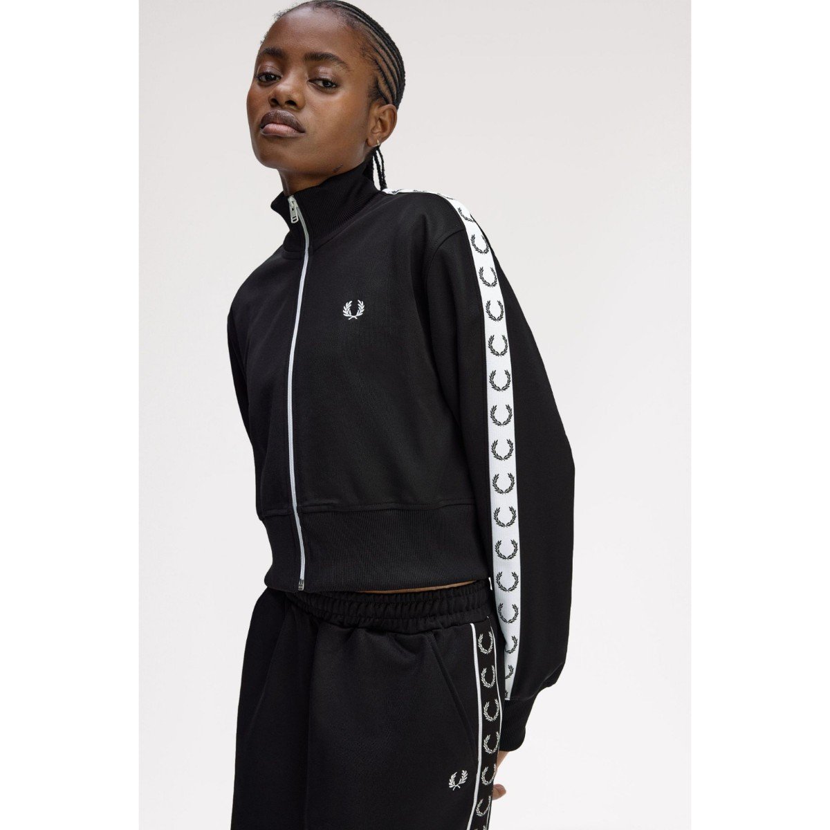 Fred Perry J4133 Cropped Taped Track Kadın Ceket – SİYAH