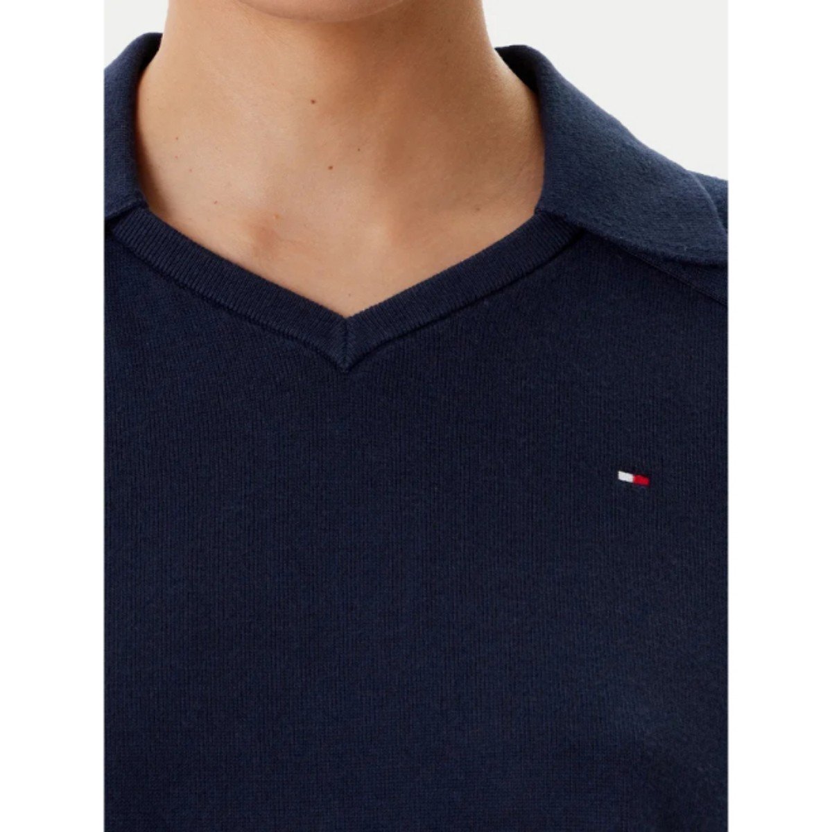 Th Ww0ww45694 Co Jersey Stch Polo V-nk S/s Kadın Sweaters – LACİVERT