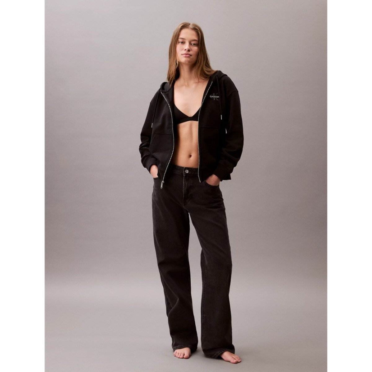 Ck Lv047b270g Monologo French Terry Fz Bf Hood Kadın Sweatshırts – SİYAH