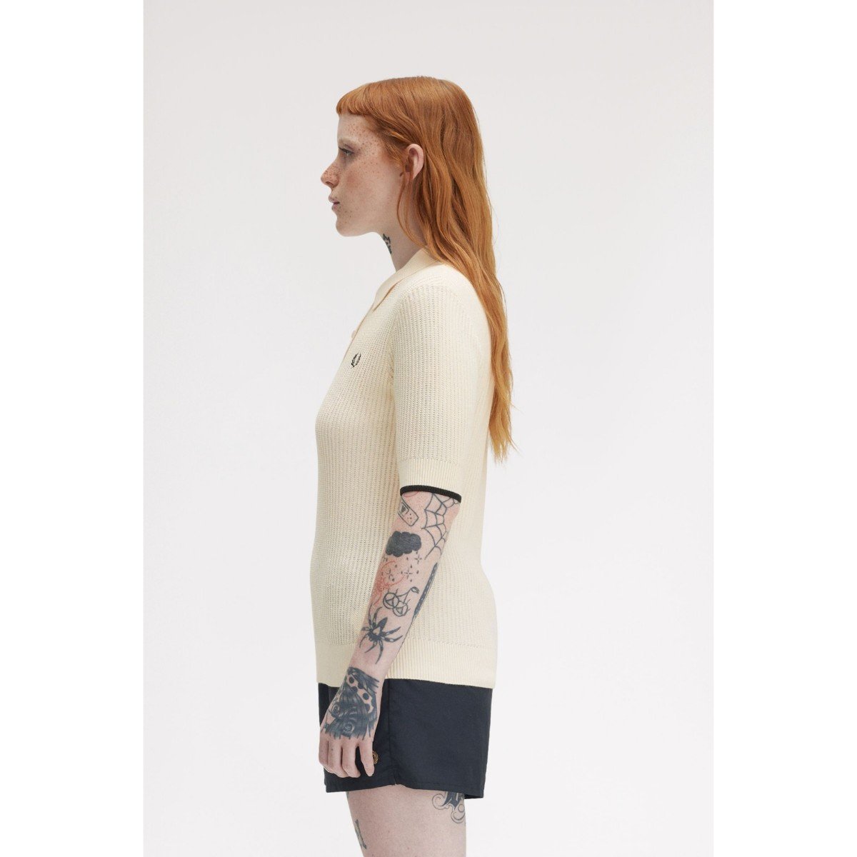 Fred Perry K9113 Mesh Knıt Polo Kadın Tshırt – AÇIK EKRU