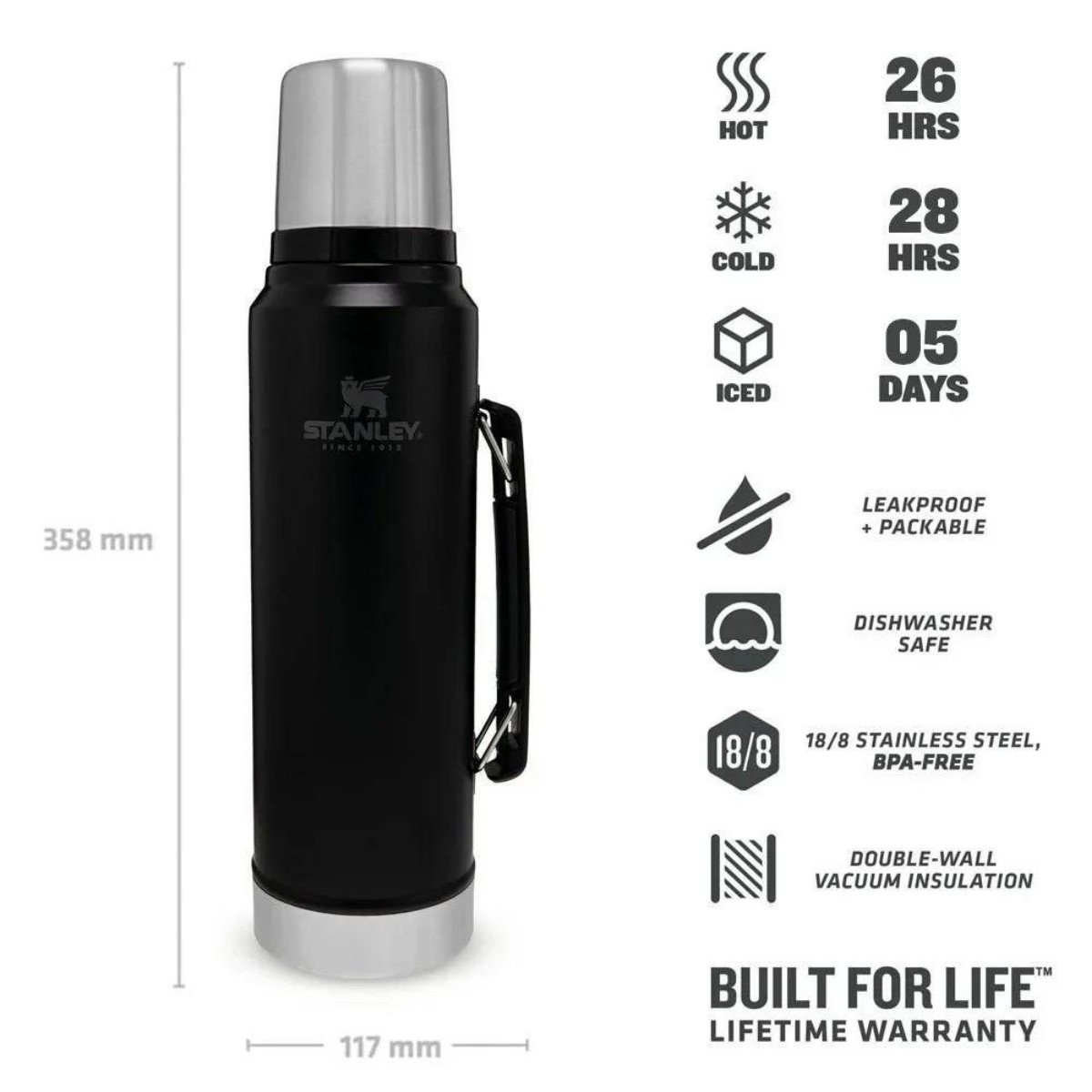 Stanley 10-08266-002 Klasik Vakumlu Çelik Termos 1 Lt Siyah – SİYAH